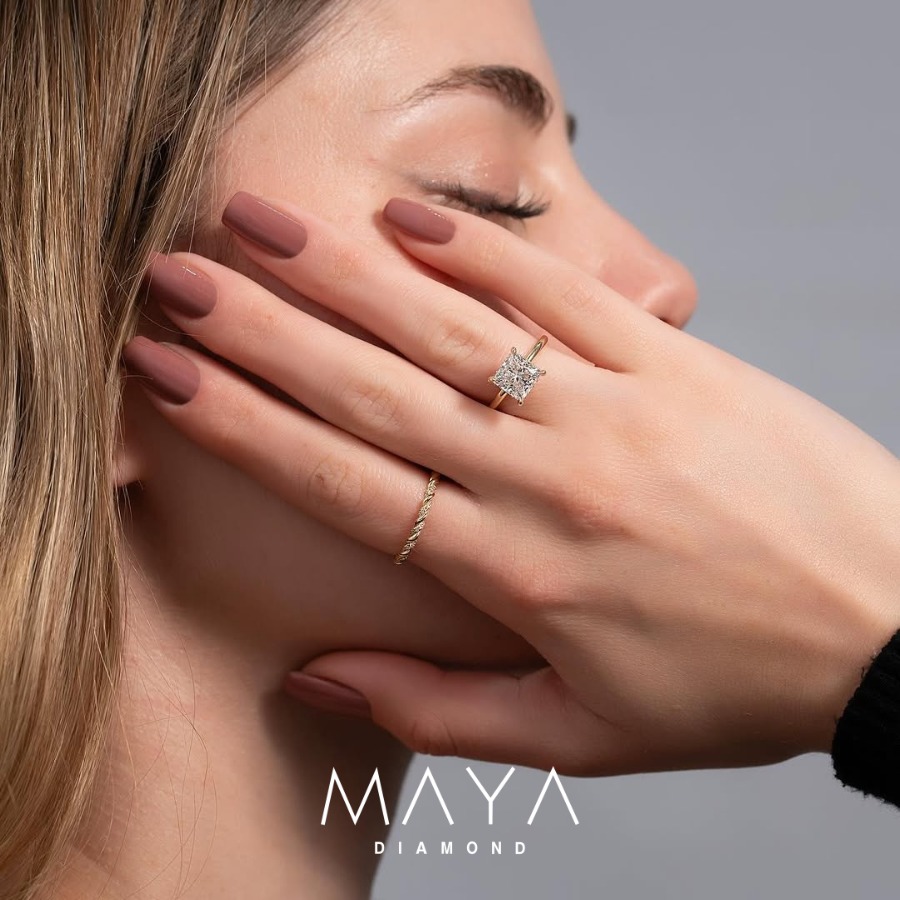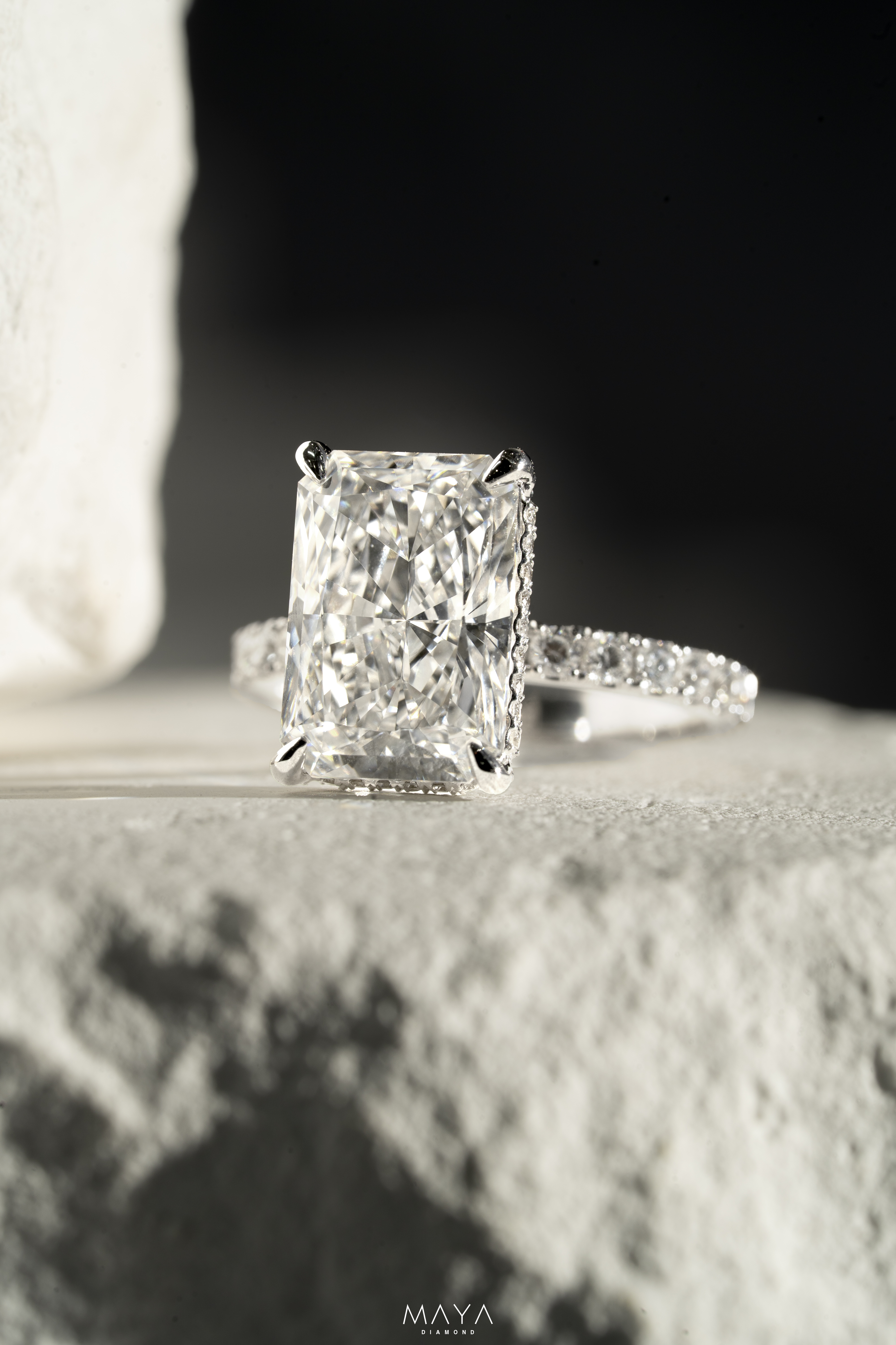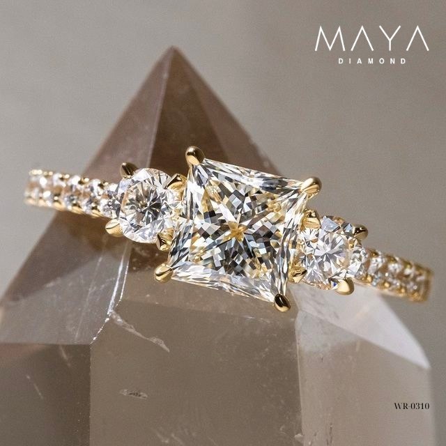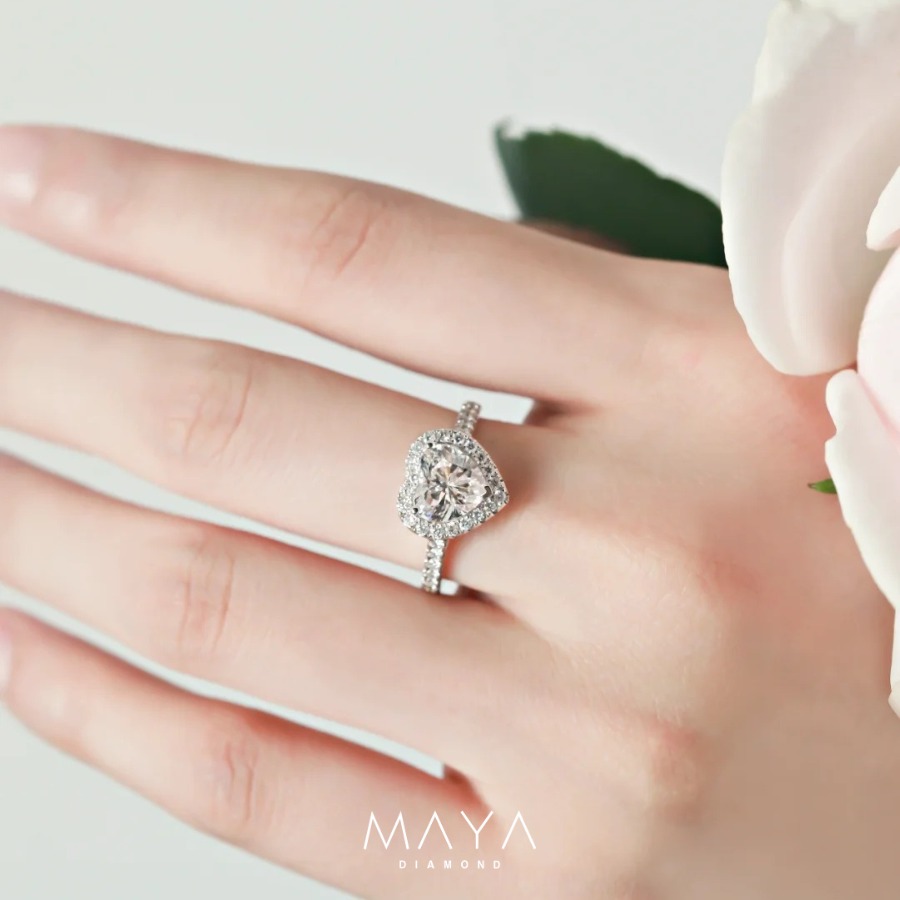 Nhẫn viên chủ Princess 1.5ct ổ Hidden Halo vỏ nhẫn đính nửa vòng kim