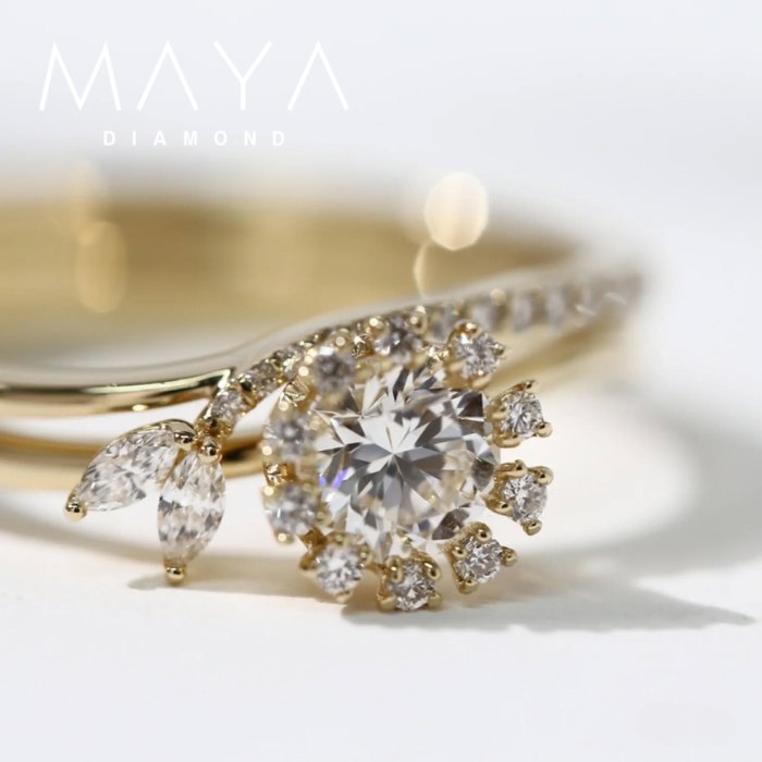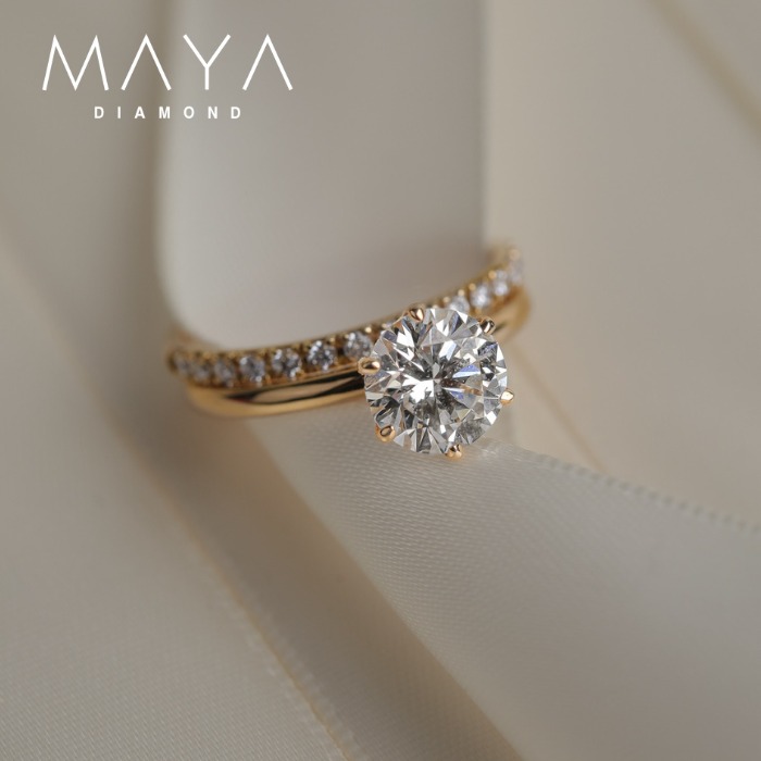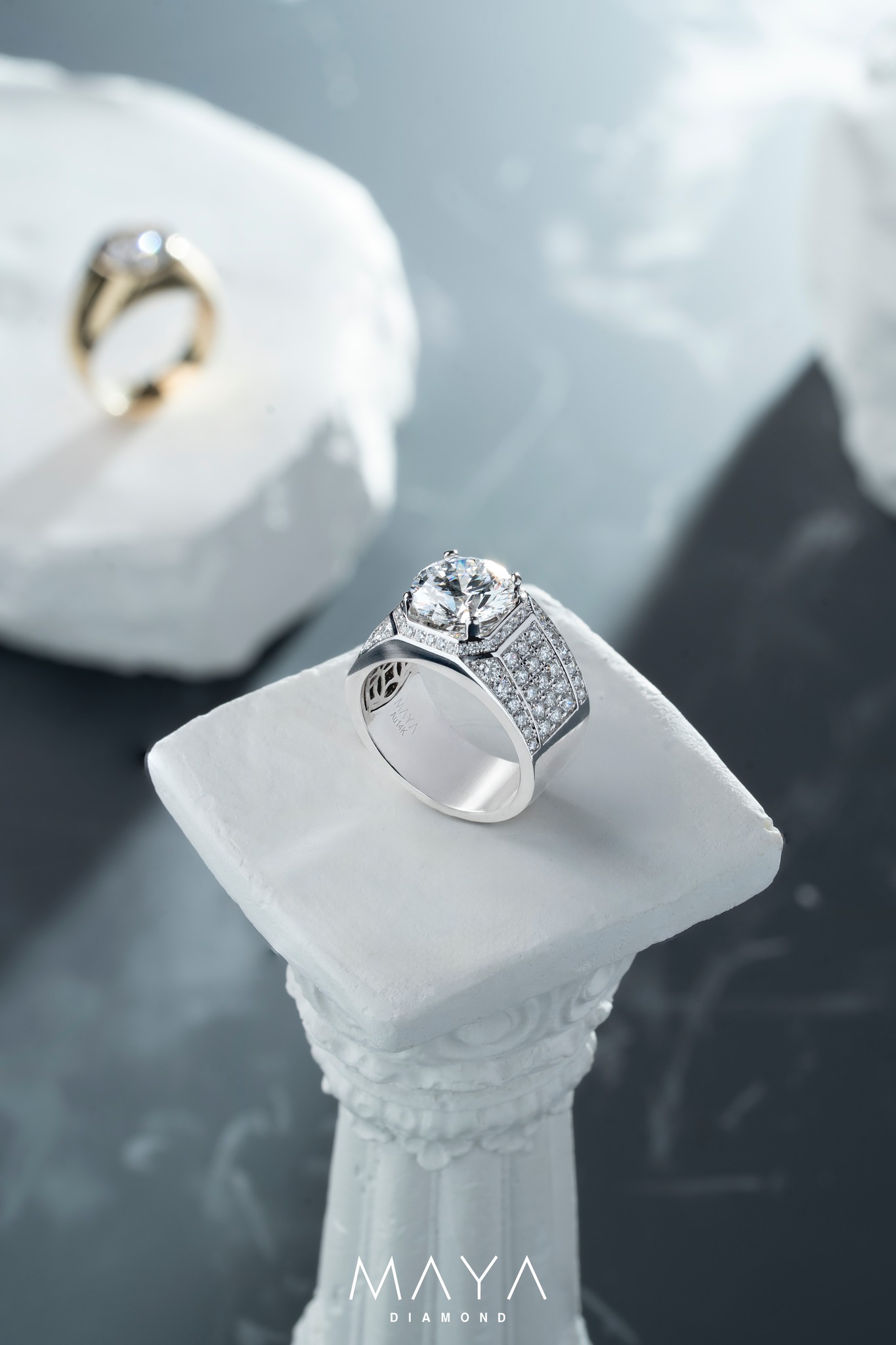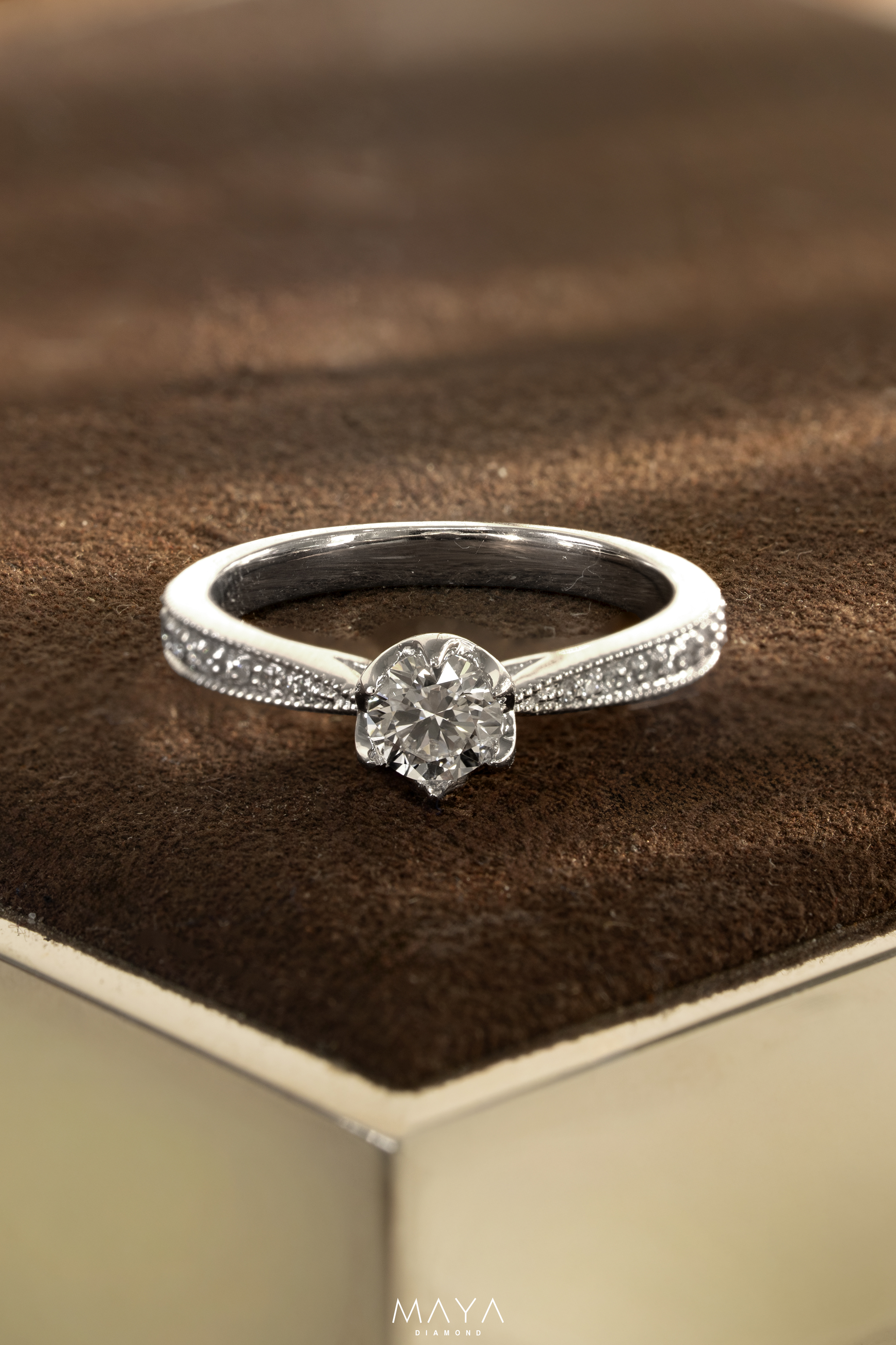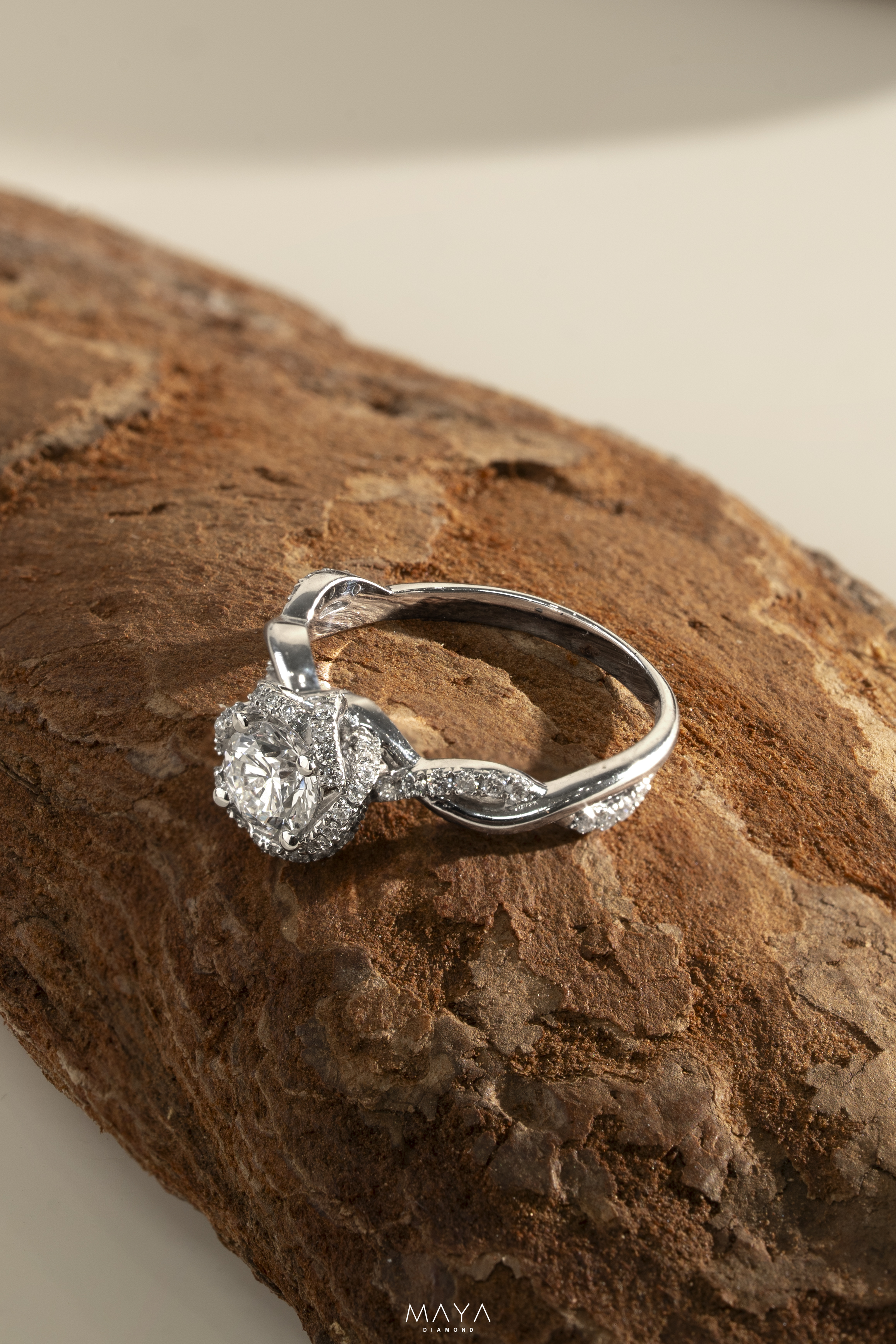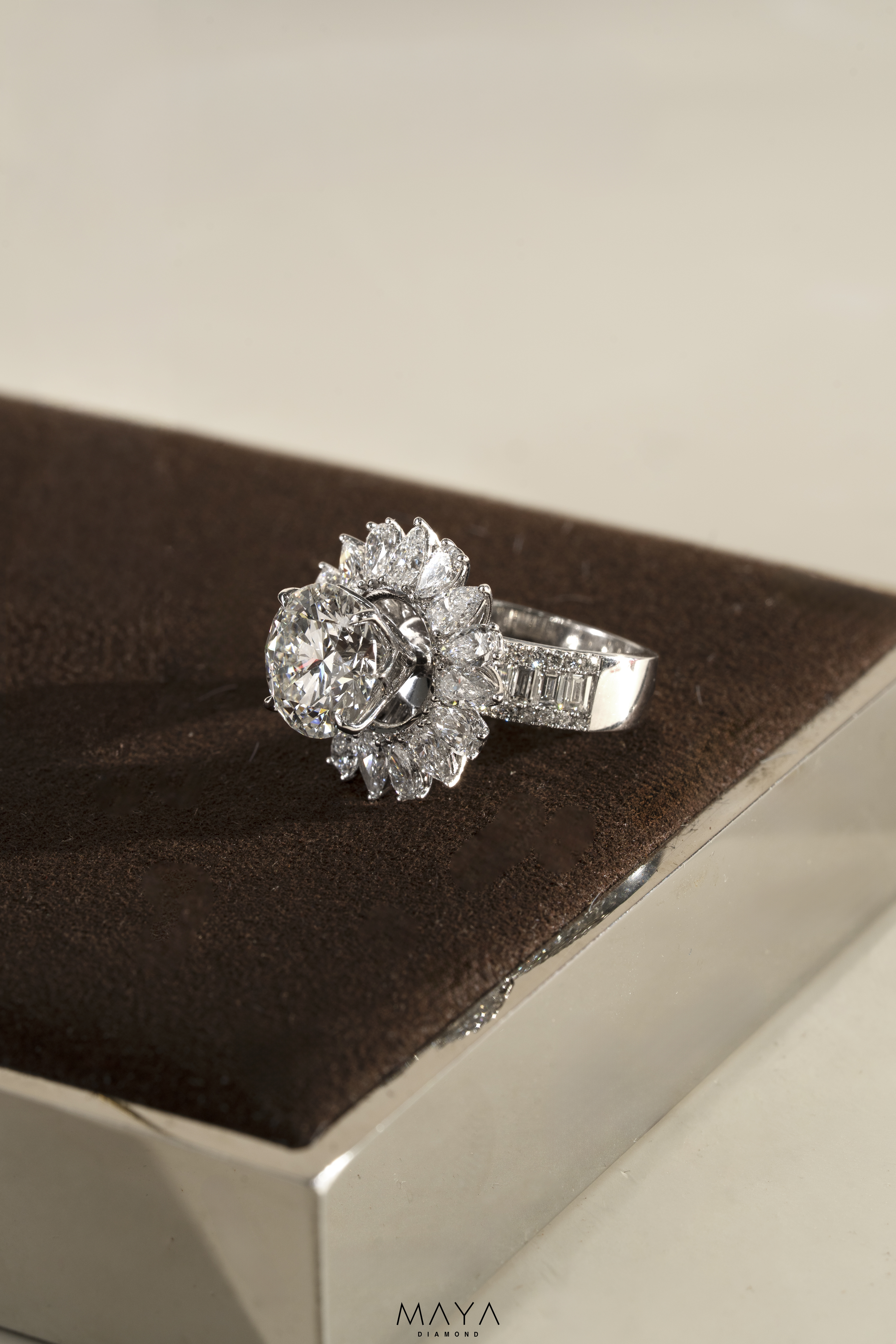 Nhẫn viên chủ Round 2.0ct, ổ nhẫn có thiết kế cánh hoa độc đáo, vỏ nhẫn trơn