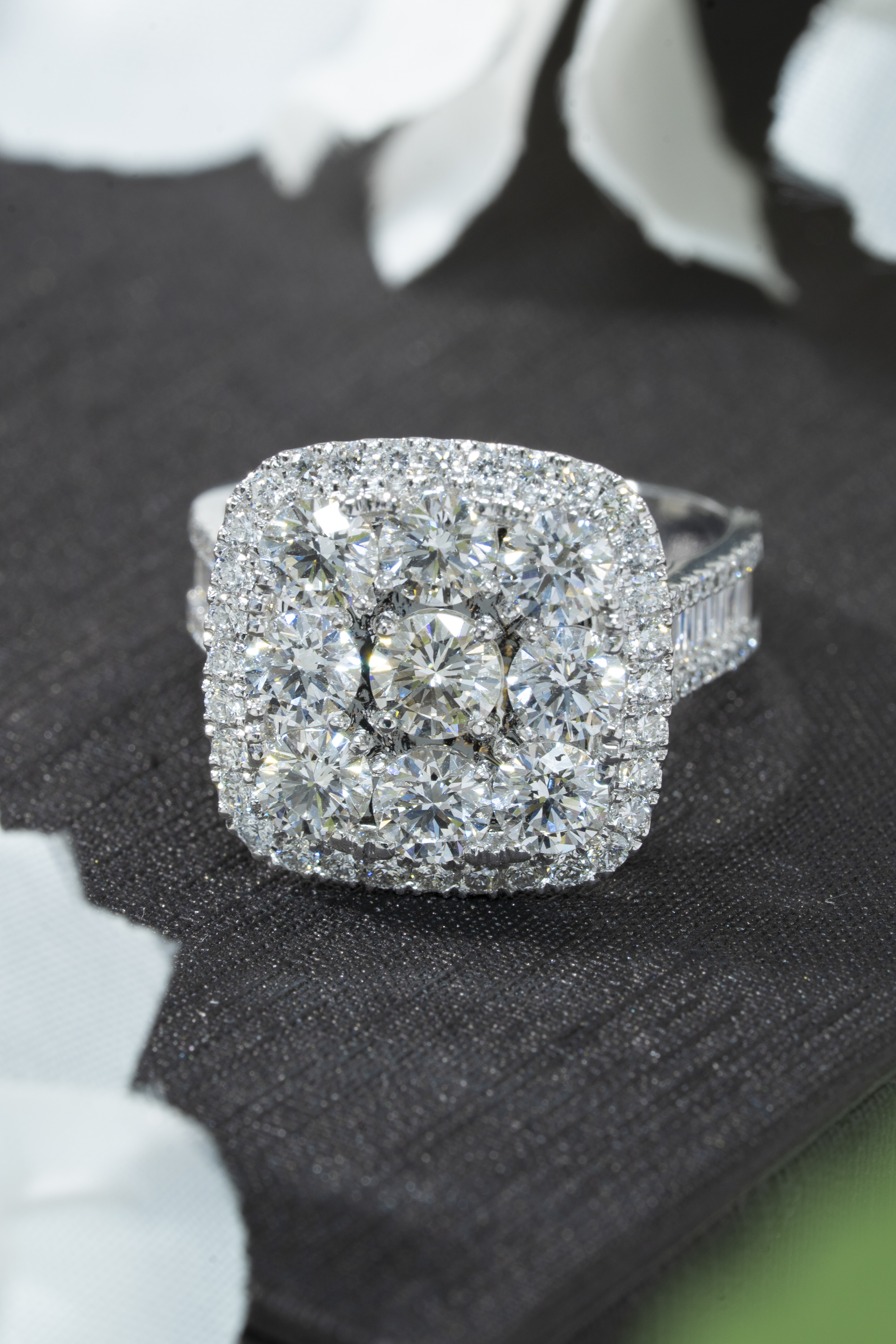 Nhẫn nữ đính 9 viên Round 1.0 ct, vỏ đính nửa vòng kim tấm