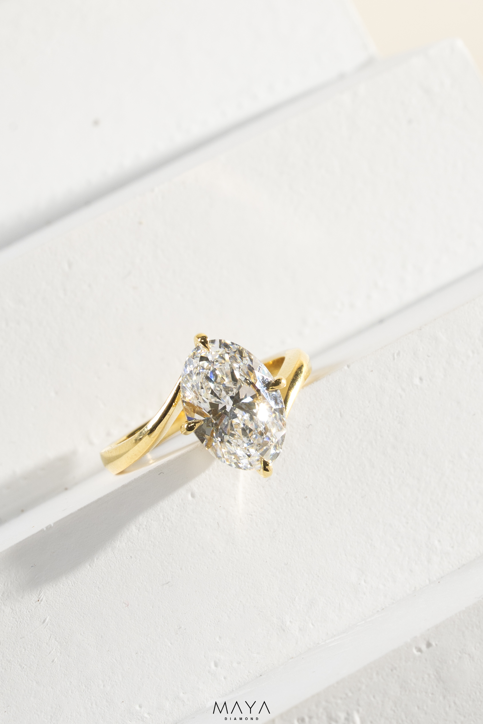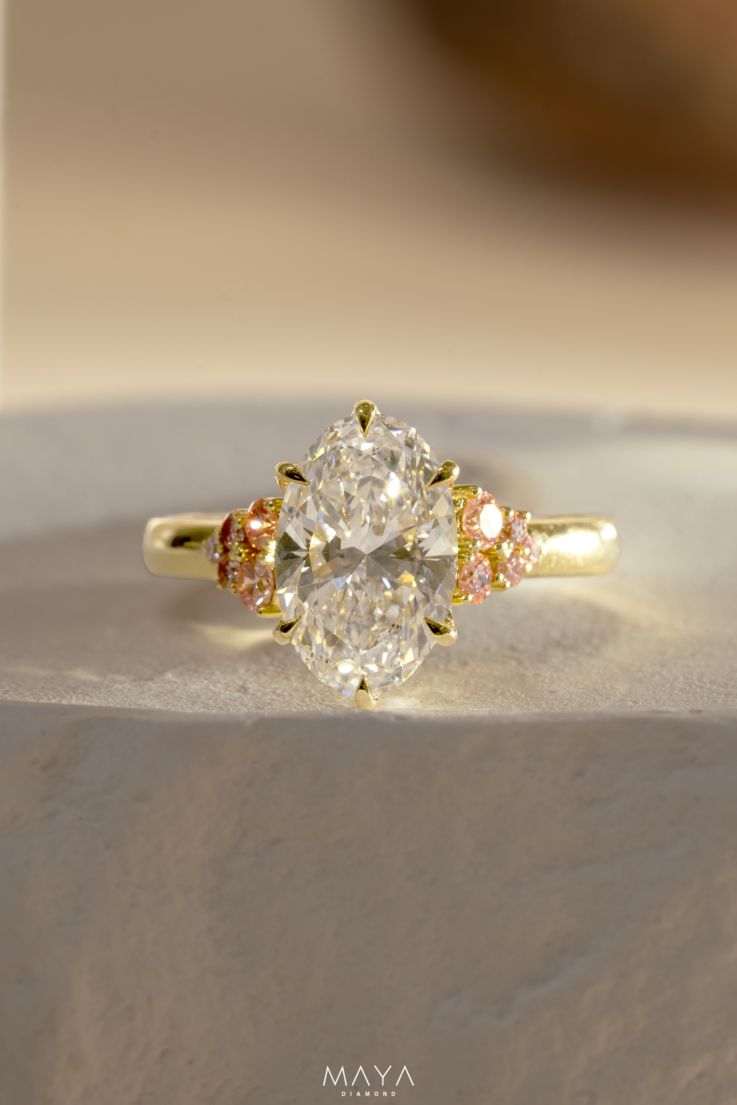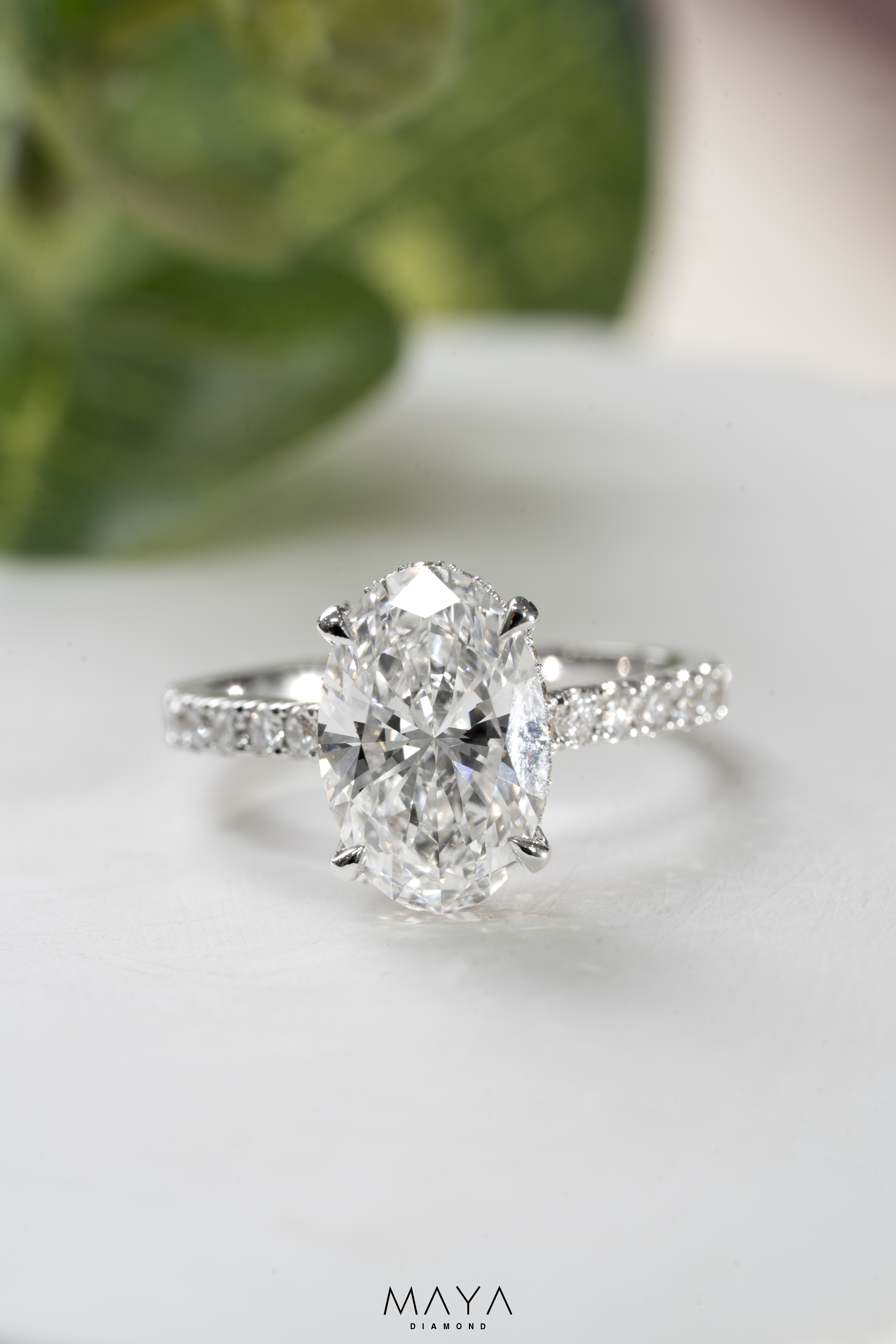 Nhẫn viên chủ Oval 2.0ct, vỏ nhẫn đính kim tấm Marquise & Round