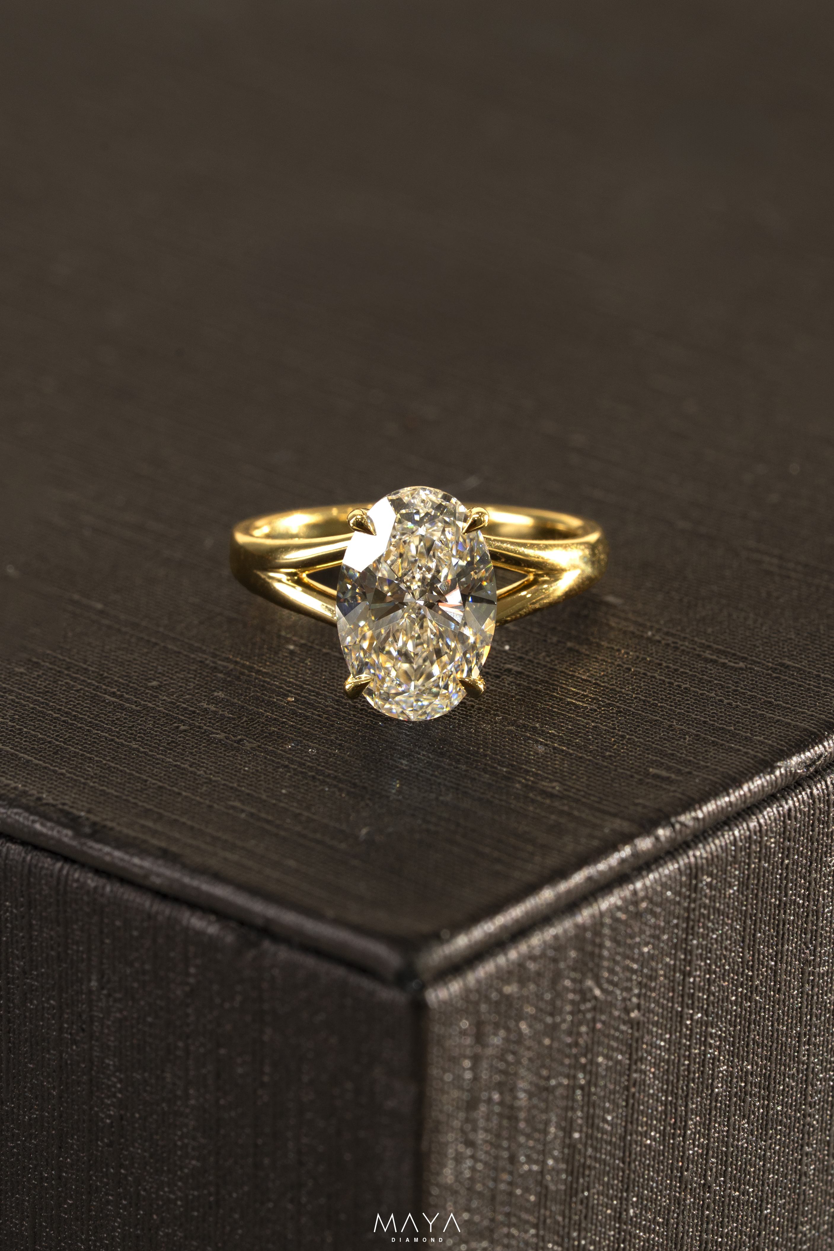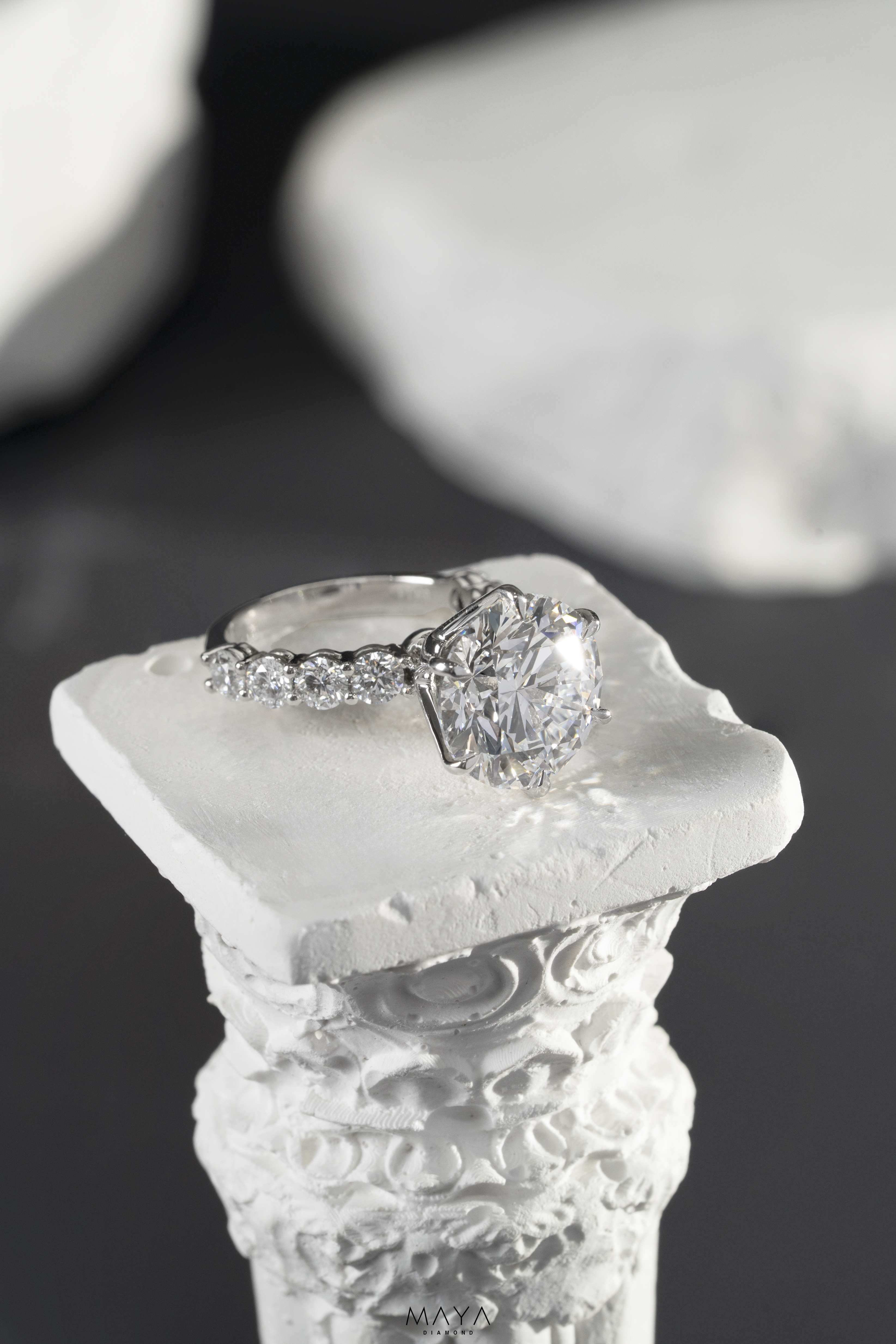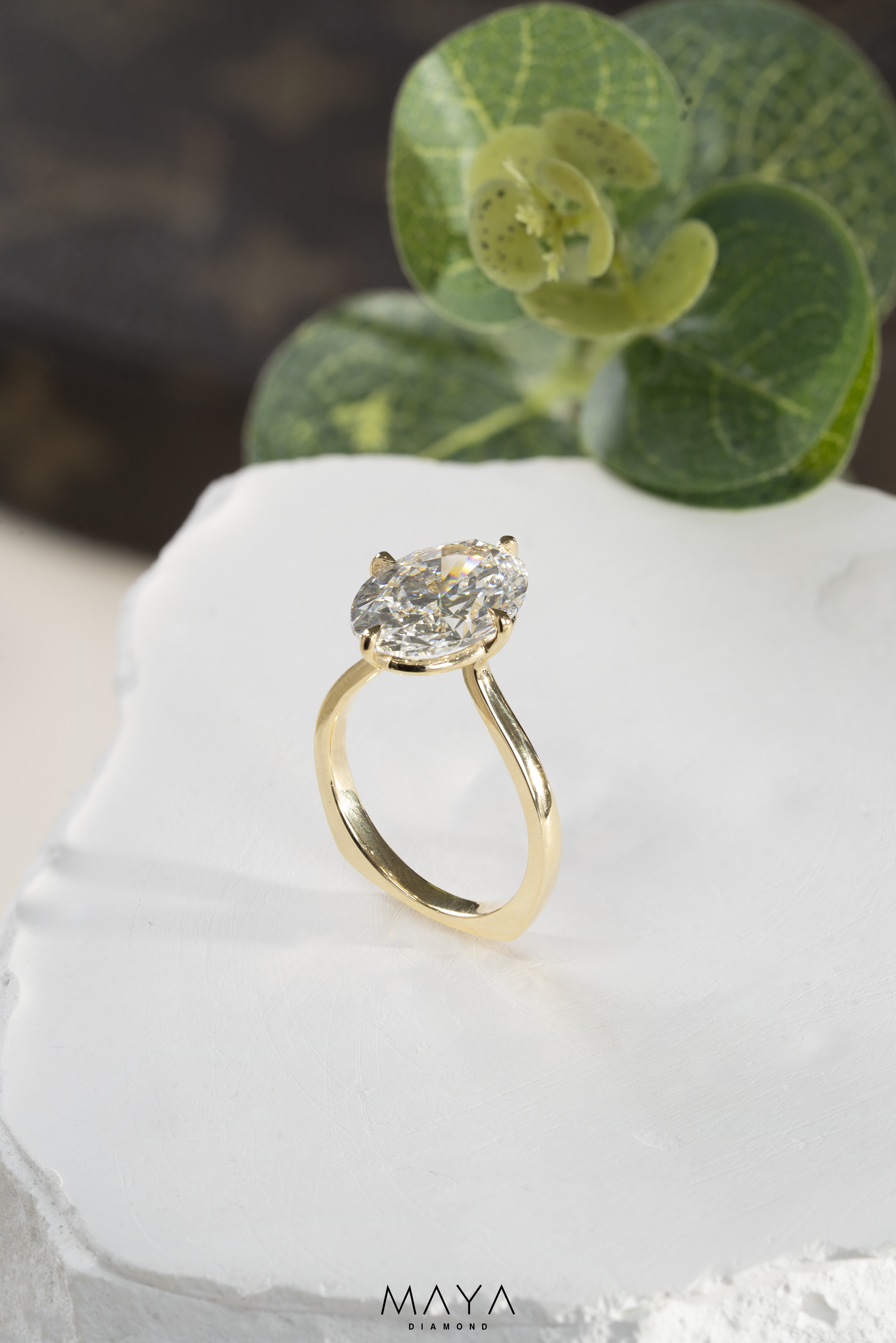 Nhẫn viên chủ Oval 2.0ct, vỏ nhẫn đính kim tấm Marquise & Round