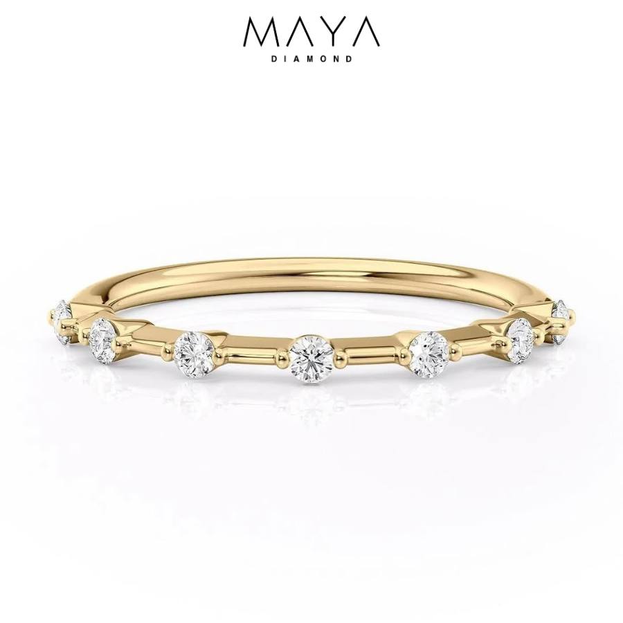 Nhẫn nữ 10 viên Round, vỏ đính nửa vòng kim tấm
