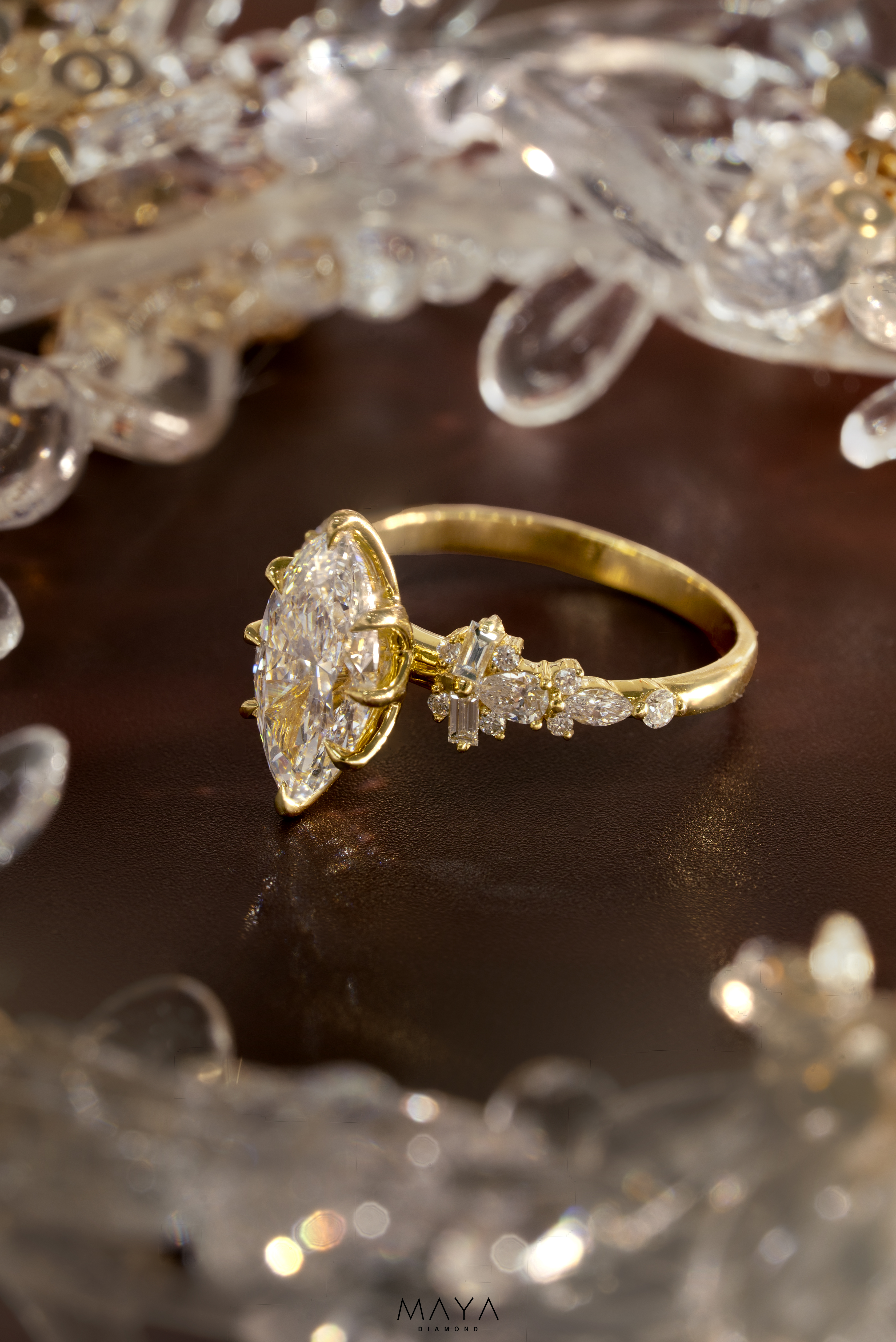 Nhẫn viên chủ Marquise 2.0ct, ổ Hidden Halo, vỏ nhẫn đính kim tấm Marquise
