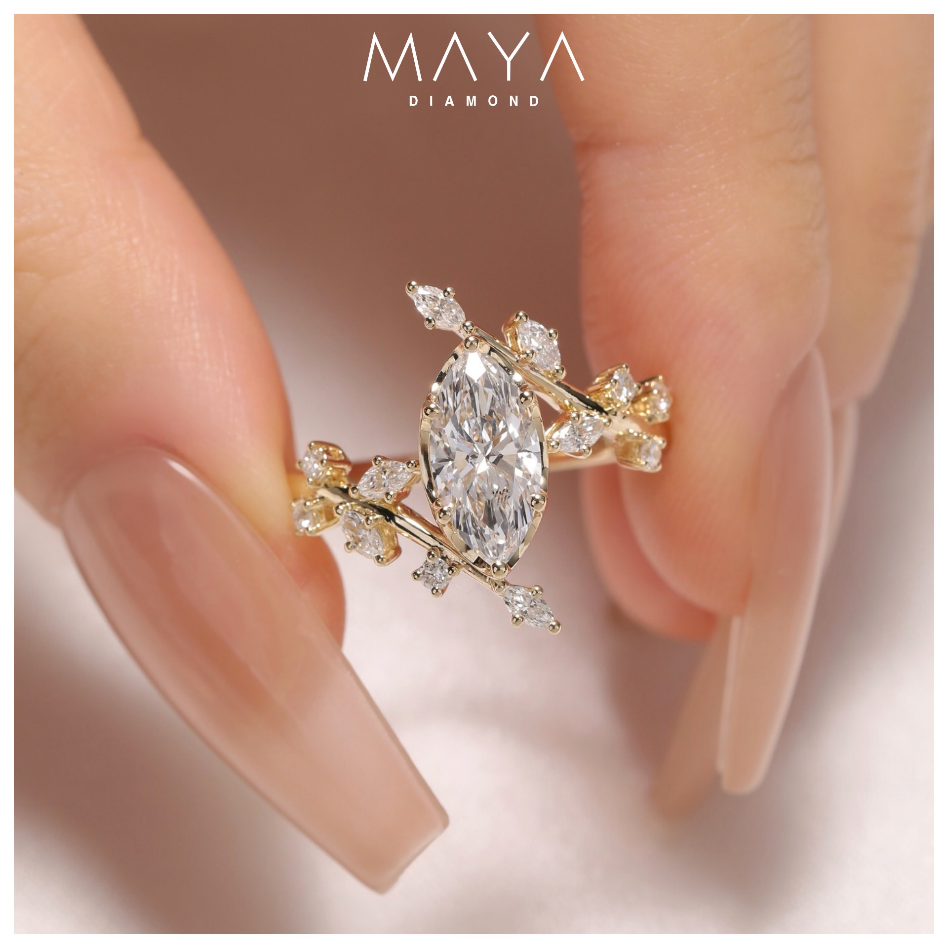 Nhẫn Viên Chủ Pear 2.0ct, Ổ Hidden Halo, Đính 6 Viên Tấm Marquise13.740.000đ