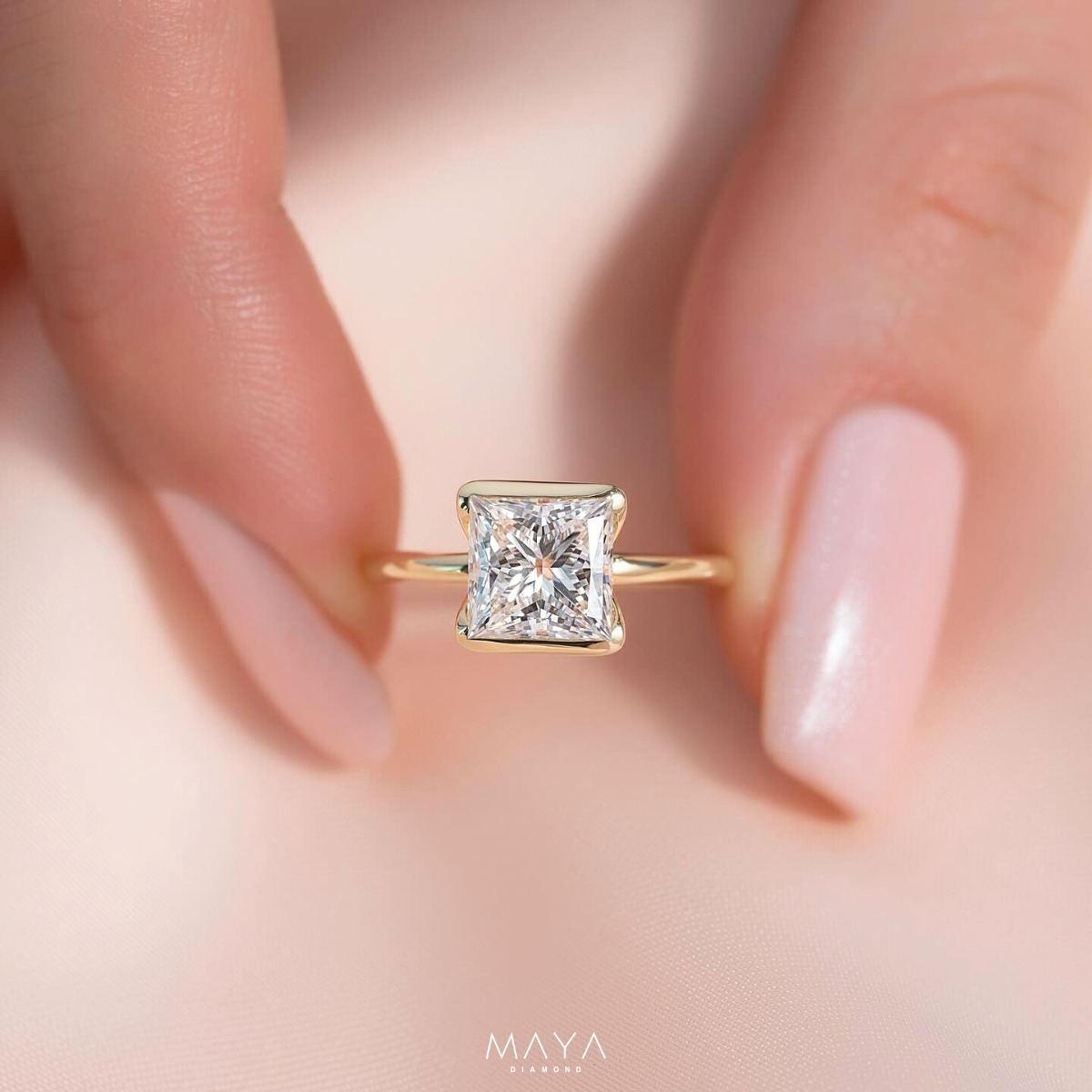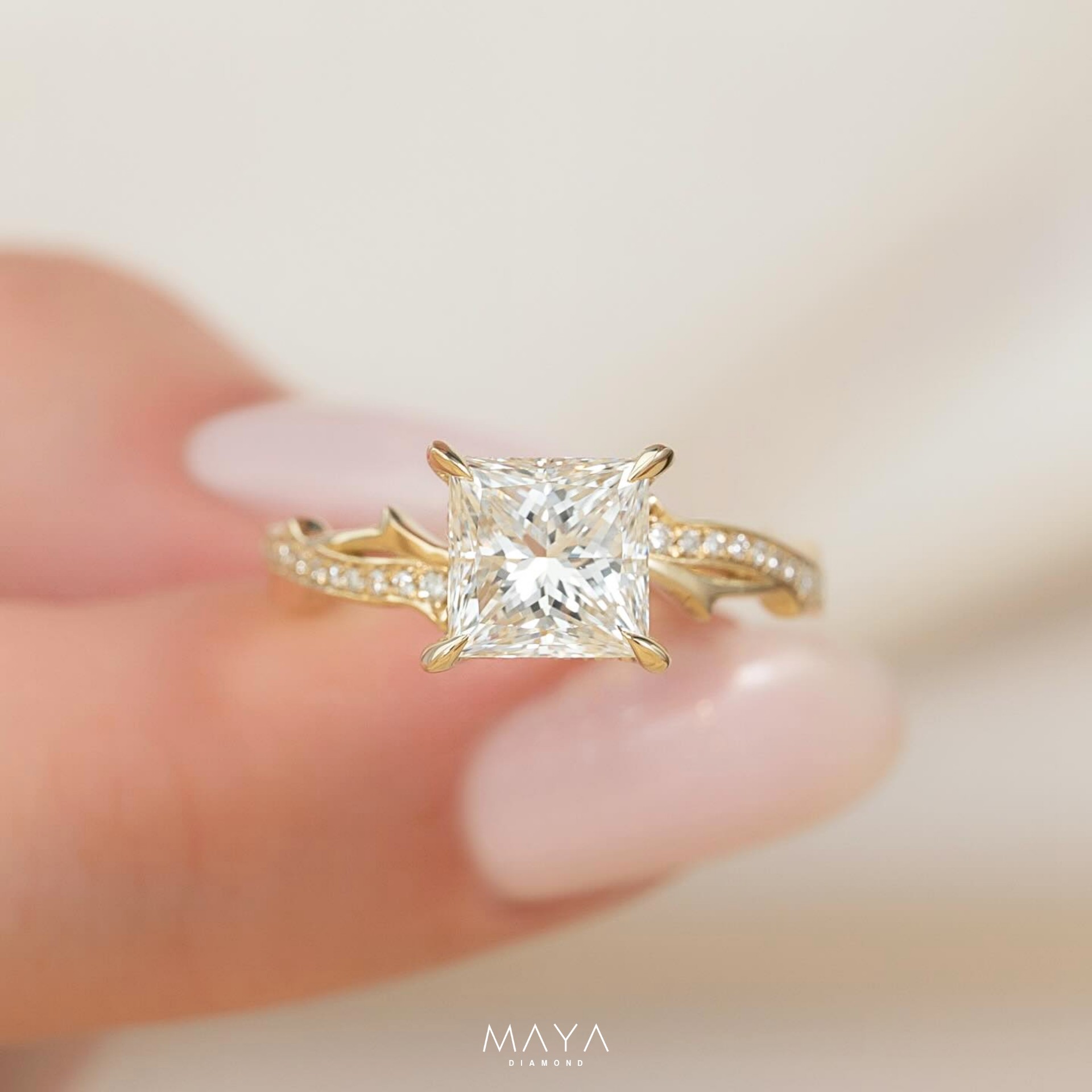 Nhẫn Viên Chủ Asscher 2.0ct, Ổ Vàng Vàng TrơnWR-032110.000.000đ