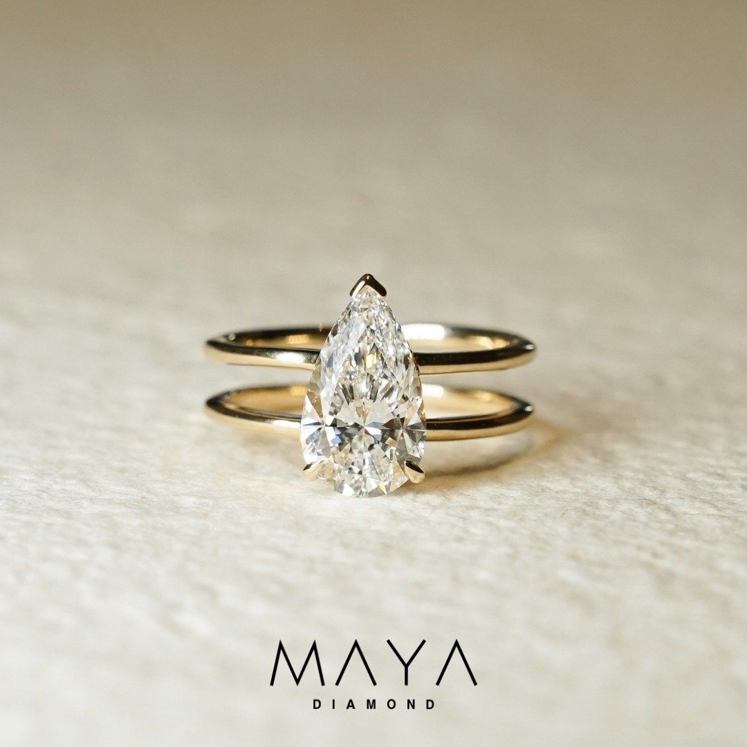 Nhẫn Viên Chủ Pear 1.5ct, Ổ Vàng Vàng TrơnWR-01779.000.000đ