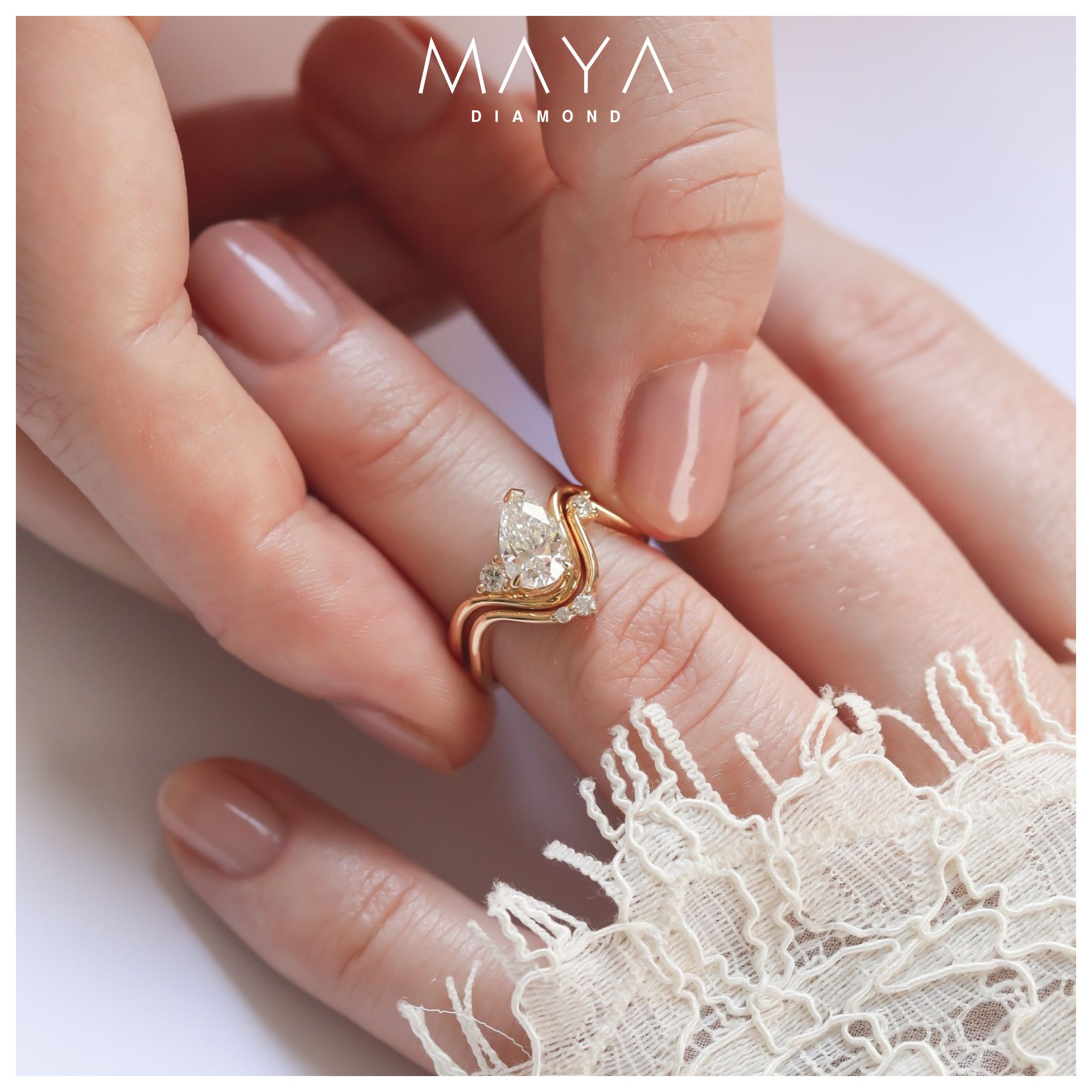 Nhẫn Viên Chủ Pear 1.5ct, Ổ Vàng Vàng đính kimWR-020011.400.000đ