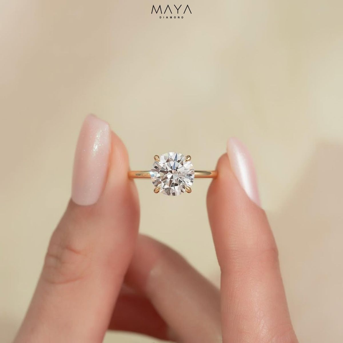 Nhẫn viên chủ Round 2.0ct, ổ nhẫn đính viền Halo, Viền nhẫn vàng vàng trơnWR-03419.700.000đ