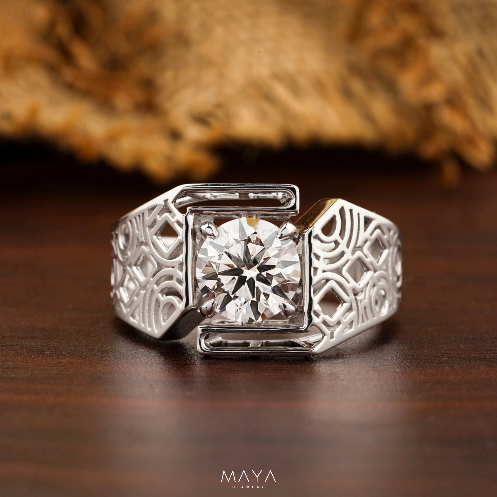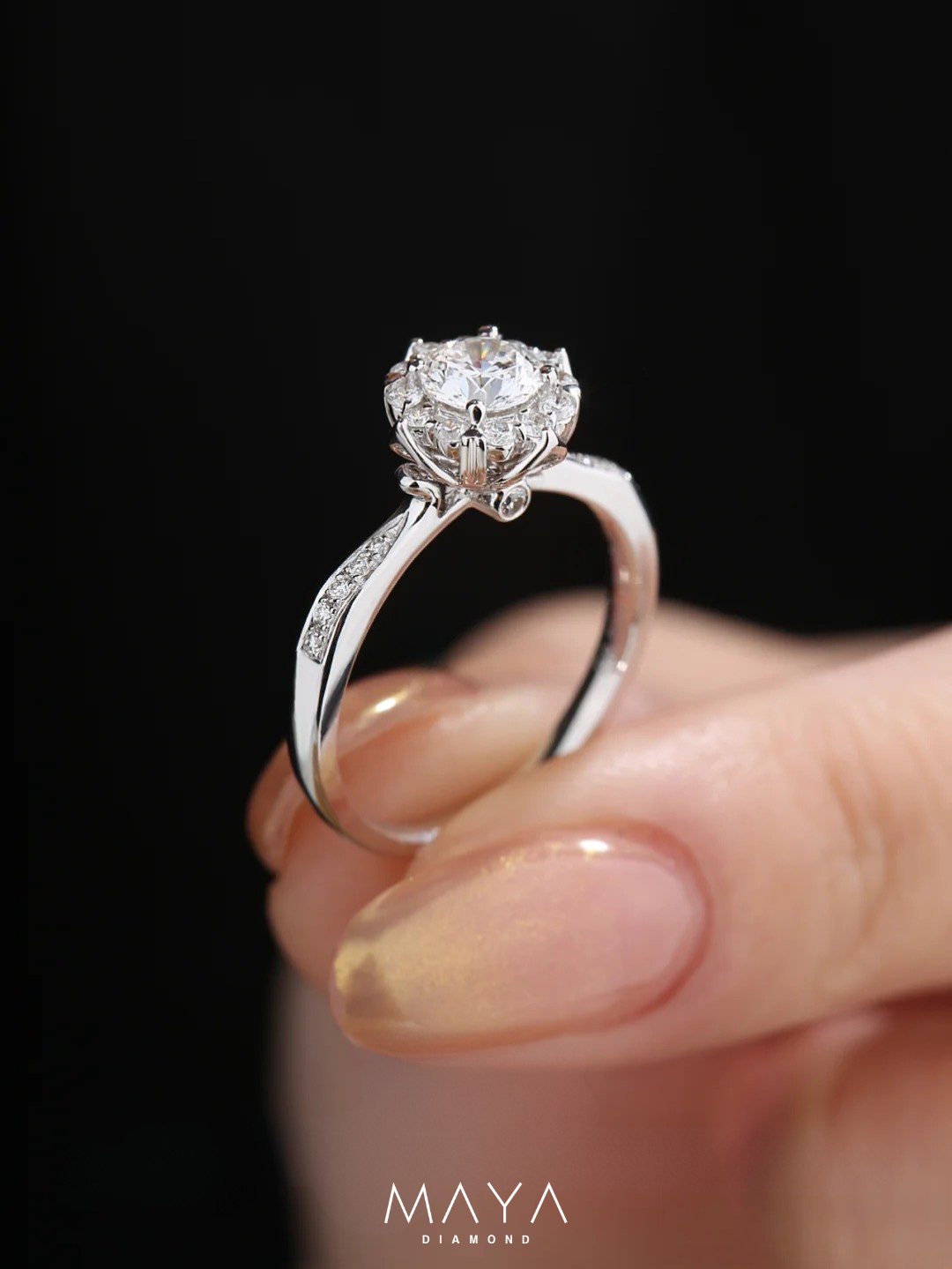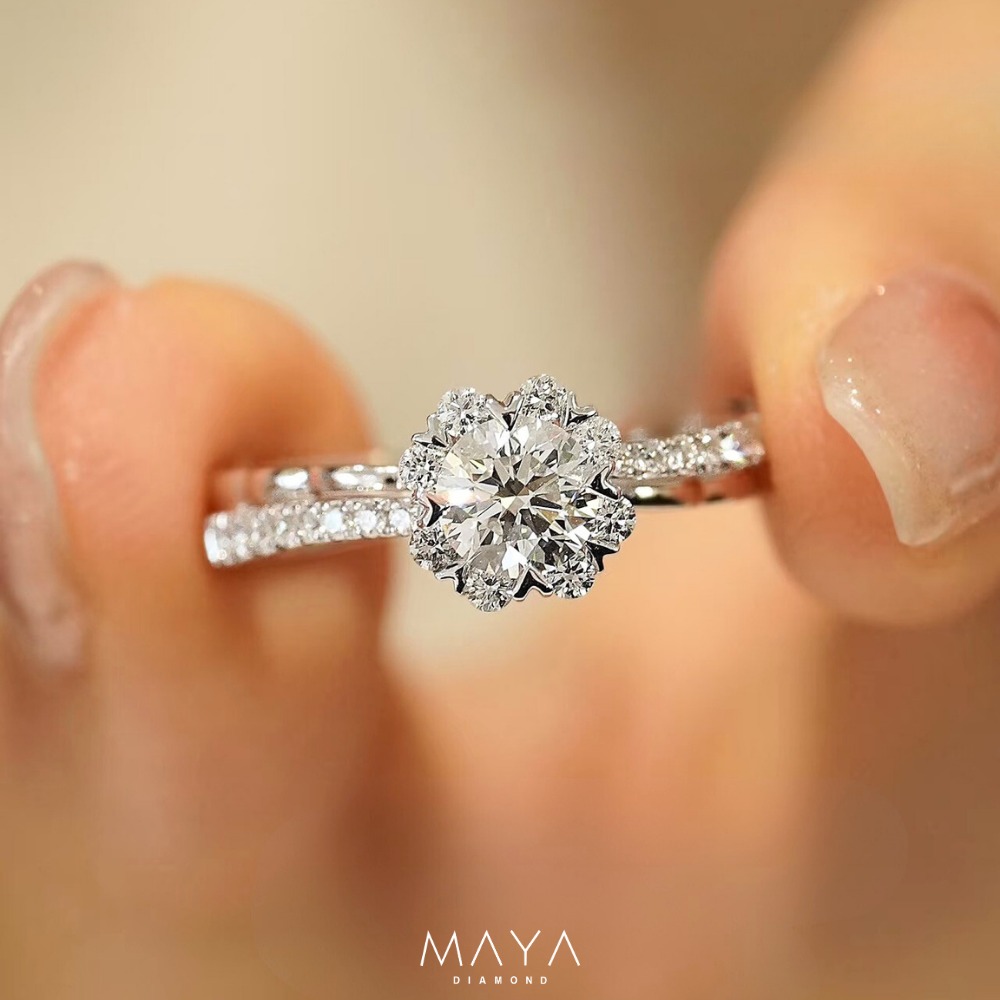 Nhẫn viên chủ Round 2.0ct, ổ nhẫn có thiết kế cánh hoa độc đáo, vỏ nhẫn trơnWR018651.250.000đ