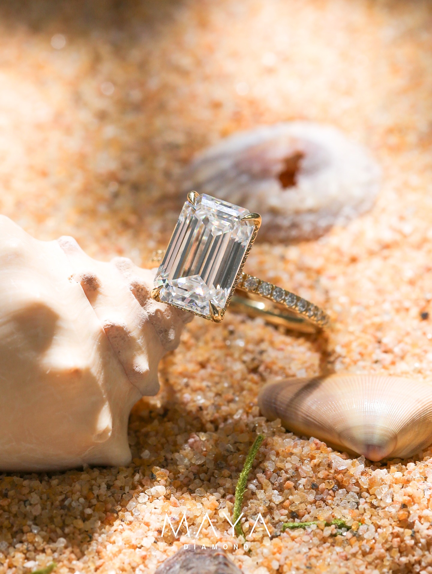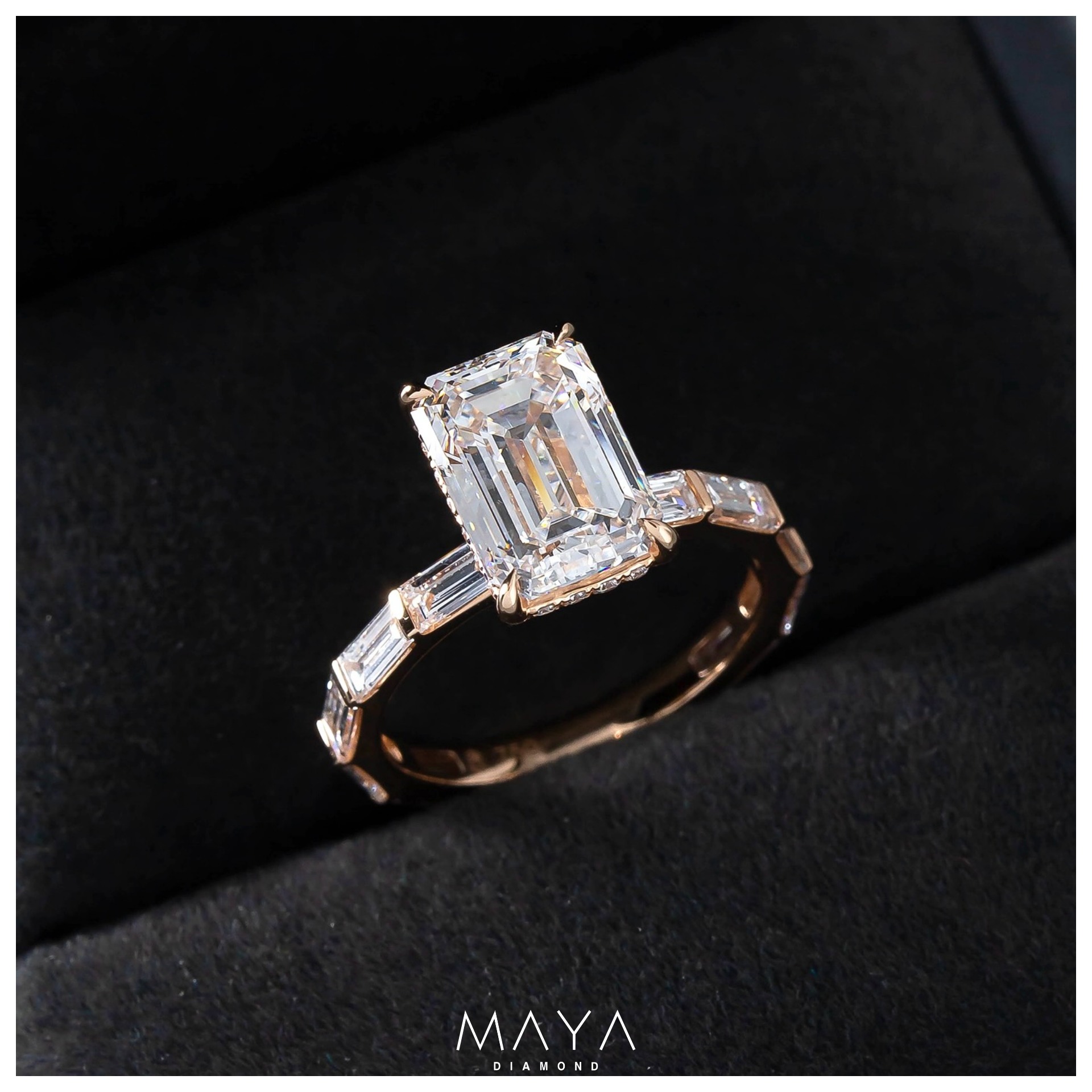 Nhẫn viên chủ Emerald 3.0ct kết 2 viên Baguette hình thang bé, vỏ nhẫn trơnWR020290.500.000đ