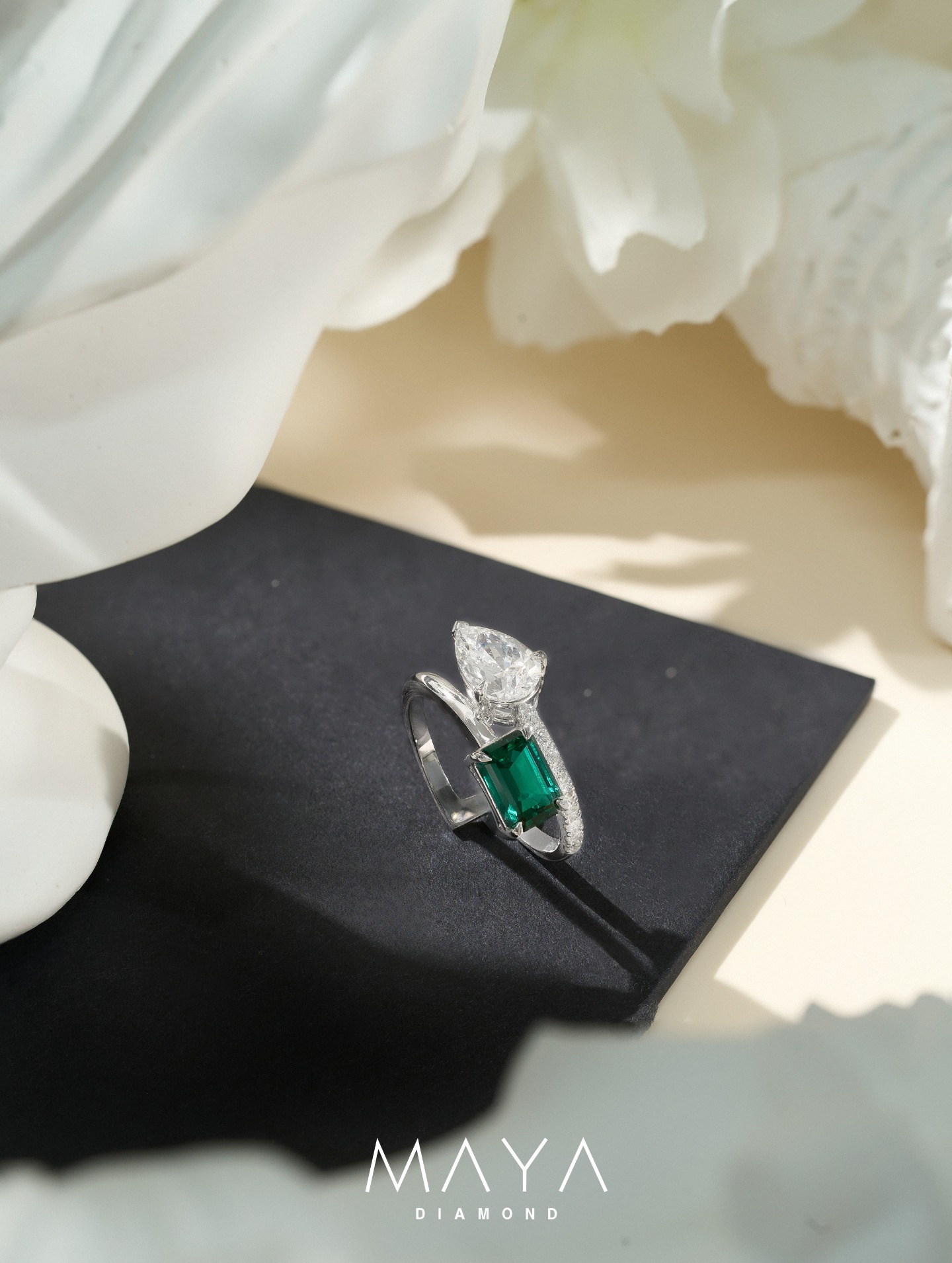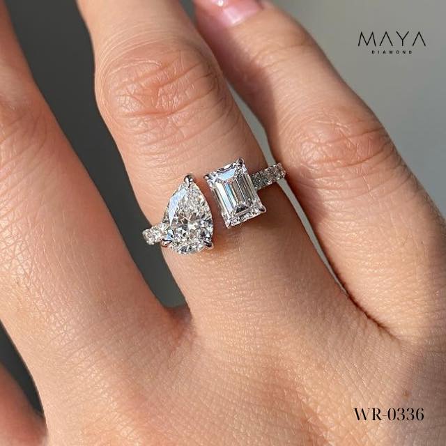 Nhẫn 2 viên chủ Pear 2.5ct & Emerald 2.0ct, vỏ nhẫn đính kimWR-033610.000.000đ