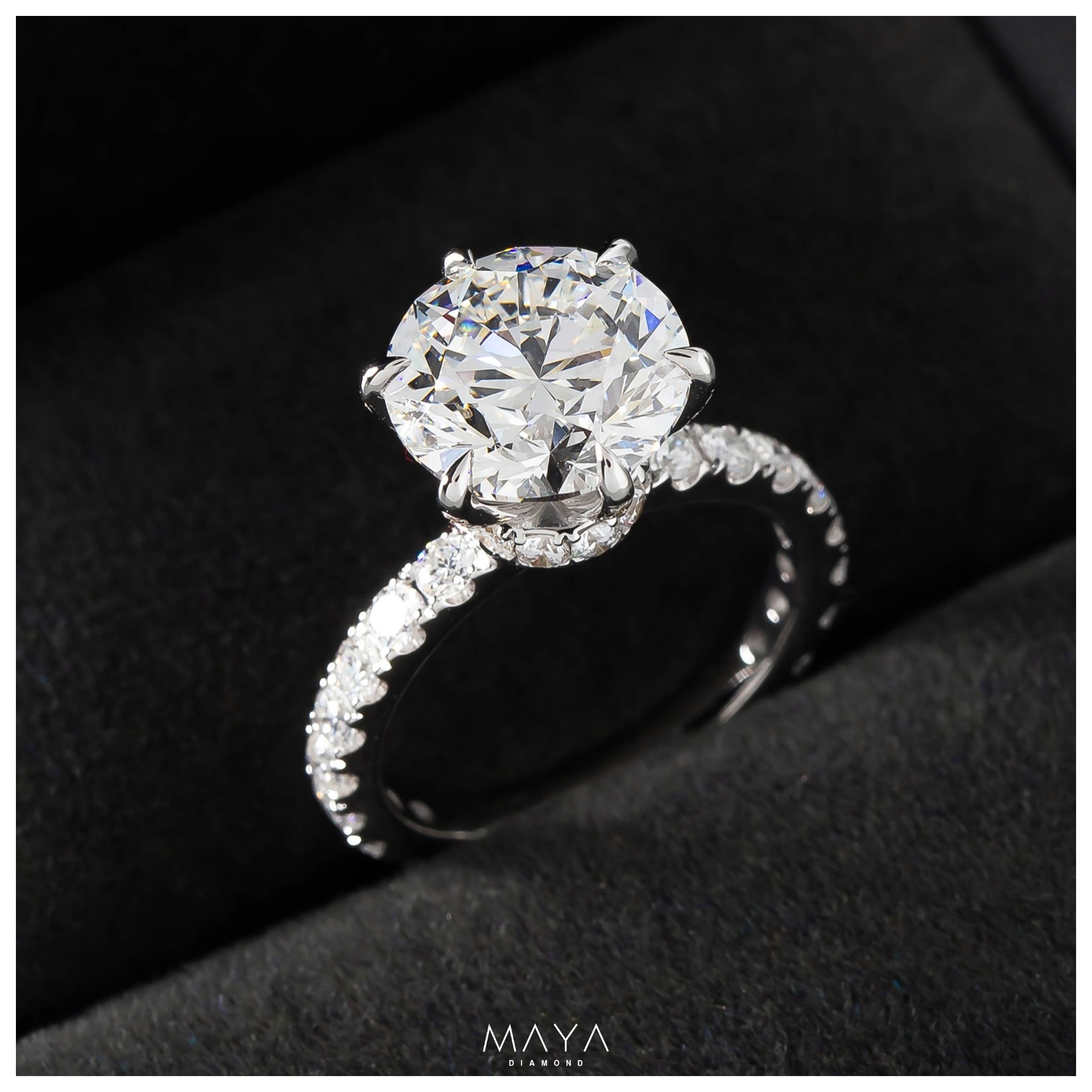 Nhẫn viên chủ Round 2.0ct, ổ Hidden Halo, vỏ nhẫn đính 2/3 vòng kim tấm RoundWR018759.200.000đ