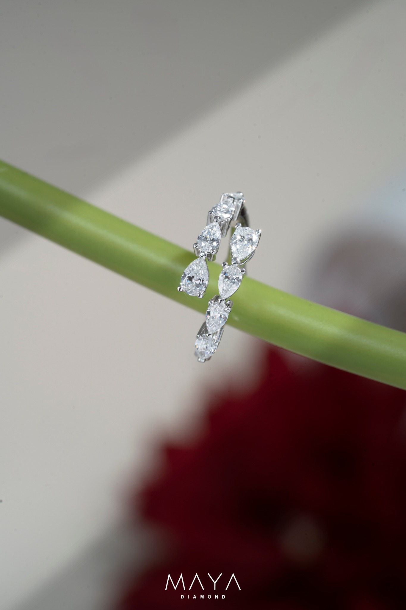Nhẫn viên chủ Pear 2.0ct ổ kết 2 viên kim tấm Pear, vỏ nhẫn trơnWR018264.400.000đ